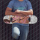 Skateboard Fleur Sakura Branche sur soleil doré sur marbre