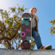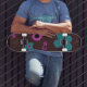 Skateboard Fleurs marguerites Turquoise Magenta Black eggplan