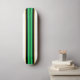Ce design cool et sportif présente une bande verticale de centre vert menthe brillante, scindée par une fine rayure noire, puis des rayures assorties, puis des rayures brun doré. La bande la plus externe de chaque côté est blanche.