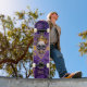 Graffiti Graffiti Skull King Skateboard Deck by BigTexFunkadelic Grey skull head with golden crown, atop a purple and gold graffiti background. © 2020 BigTexFunkadelic