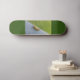 Un Skateboard vert foncé 7 3/4, avec une photo d'un Grasshopper, sur une balustrade.