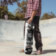 Faites de la planche à roulettes avec une vue d'horizon de NYC de l'Empire State Building, noir au-dessus du grain en bois naturel.