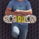 Terrasse rétro avec fleurs super aux couleurs vives avec contours noirs. Ce design "way back" est frais et nouveau. Super cadeau pour votre patineur préféré! Ses patineurs aimeront ce design floral moderne et amusant. "Je patine donc je suis" est prêt pour vous à Ajouter un nom pour la personnaliser!
