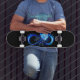 Symbole de l'infini lumineux avec une rose magnifique et luxuriante en fleurs faite de flammes bleues sur fond noir.