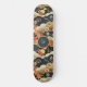 This vintage look skateboard features a Japanese style print -- similar to a kimono pattern -- with white, teal, tan, and orange flowers on dark teal-- almost black. Your monogram initial appears in gold text on a coordinated circle of dark blue teal, bordered by orange. The combination of clouds, graphical lines, stylized flowers, and curved pattern create a peaceful and beautiful aesthetic.