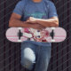 C'est un skateboard de dessins animés japonais. Les planches de skateboard sont un élément populaire parmi les skateboarders et peuvent être utilisés pour une variété de tours. Certains skateboarders préfèrent les ponts avec des personnages de dessins animés ou des filles animées imprimées sur eux, et ces ponts viennent souvent avec du ruban adhésif qui a les mêmes designs.