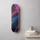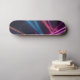 Des lignes magenta, jaune, orange et bleu brillantes comme des lumières laser sur un arrière - plan noir créent un skateboard attrayant. Très design high-tech et moderne !