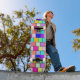 pont de planche à roulettes rétro à motif de brique multicolore