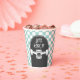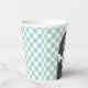 Retro blue check Skateboard Let's Kick It Birthday party cups.