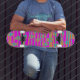 Composition abstraite de lignes bleu clair brillant d'orange sur un arrière - plan magenta. Fabriqué à partir d'un graphisme de 9 x 33 pouces, réalisé à partir d'un original vectoriel pour assurer la meilleure qualité d'impression.
