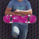 Skeleton motif main sur un arrière - plan rose chaud est une conception amusante skateboard pour quiconque aime les squelettes.