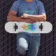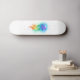 Grande méduse irisée, artistiquement dessinée, brillante, avec de longues tentacules sur le blanc, peinte sur l'arrière - plan multicolore. Méduse arc-en-ciel.