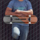 Skateboard Métal brillant gris et orange d'acier inoxydable