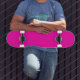 Skateboard monogramme de mode rose néon