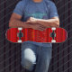 Skateboard Monogramme, Dragon rouge sur effet métallique roug