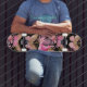 Skateboard Motif à papillon floral rose et or
