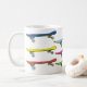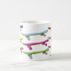 A pop art -style mug showing a collection of skateboards in different colours. This design can be ordered on any style or type of mug in the range