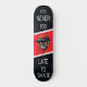 illustration crane avec casquette et coulures. Texte "it's never too late to skate". Fond noir.