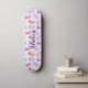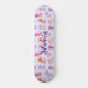 Mignons macarons nom personnalisé skateboard. Skateboard est une excellente idée cadeau pour une fille qui aime les macarons et le skateboard. La planche est conçue avec des petits macarons cool violets et roses. Personnalisé avec le nom dans le script de calligraphie bleu en lettrage sur la zone droite du tableau. CLIQUEZ SUR PERSONNALISER L'OPTION MODÈLE ET ENTREZ LE NOM.