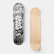 Une image numérique en noir et blanc d'une porte de magasin recouverte de graffitis sur un immeuble condamné de New York donne à ce skateboard une atmosphère urbaine et pointue.