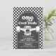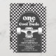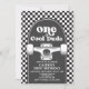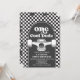 Skateboard One Cool Dude, 1st Birthday invite with black check and skateboard.