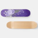 Dd marque skateboard a fait un violet sur le motif pourpre damassé, avec des graphiques de plumes de parties scintillant argent et violet et roses lavande. Customisez d'ajouter votre propre texte.