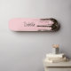 Blush Rose Parties scintillant Girly Sparkles Nom Personnalisé Skateboard. Parties scintillant filles skate aussi! Panneau rose vif avec parties scintillant simulée rose, blanc et noir goutte-à-goutte girly skateboard. Le nom du patineur dans la typographie manuscrite moderne sur l'équipement extérieur personnalisé de la parties scintillant rose de cette fille. N'oubliez pas de compléter votre cadeau en ajoutant l'ensemble Camions, Roues et Grip Tape à votre panier ! Step by Step Inspiration Series disponible exclusivement sur Zazzle à l'adresse zazzle.com/store/KrisHarty, conçu par le designer international Kris Harty. © 2022 Kris Harty Pas à pas Conception inspirationnelle