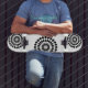 Skateboard illustré dans une impression graphique abstraite en noir et blanc. Couleurs Noir et Blanc Acheter tel quel ou customiser cet article à votre goût. Image stock