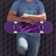Skateboard montré dans une couleur violet multicolore abstrait de fumée graphique. Couleurs Purple Multi Acheter tel quel ou customiser cet objet à votre goût. Image stock