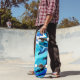 Le skateboard est présenté dans une impression abstraite multicolore bleu. Acheter tel quel ou customiser cet objet à votre goût. Stock Imprimer freepik.com