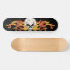 Un crâne en relief avec des flammes colorées est un design original et original de skateboard.