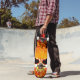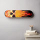 Cette image représente un crâne englouti dans les flammes. Les yeux du crâne sont creux et sombres, tandis que les dents sont barrées dans un sourire menaçant. Les flammes sont principalement dans les tons rouge et orange, avec quelques accents jaunes, et elles semblent lécher à la surface du crâne. L'atmosphère générale de l'image est intense et dramatique, avec un accent fort mis sur le danger et l'agression.