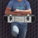 Patinage photo avec un design cool bleu, noir et gris. Customisez la carte moderne avec 3 photos. Pont en bois d'érable. Fait aussi une idée de cadeau géniale. Utilisez le modèle pour créer votre propre skateboard photo.