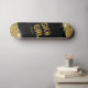 Parties scintillant noir et or Skateboard personnalisé avec la conception de devis texte "SK8 GRL" et personnalisation optionnelle du nom dispose d'une oeuvre d'art en faux éclat audacieuse avec des fusées éclatantes infusées d'un design sportif, parfait comme une décoration murale, garde-saké, ou skateboard de conception girly à utiliser dans le parc.