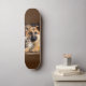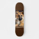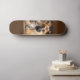La patineta tiene un diseño peculiar, representando a un perro y un gato juntos, simbolizando su amistad. La imagen en la patineta muestra a un perro y un gato demostrando su buena relación como grandes amigos. Este diseño refleja la armonía entre dos animales que comúnmente se perciben como opuestos o rivales, transmitiendo un mensaje de amistad y colaboración.