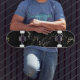 A stunning pitch black marble skateboard! This is a black, gold, beige, white and red-orange marble pattern.