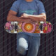 Skateboard avec un design d'art abstrait coloré dans un style mandala mosaïque.