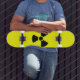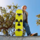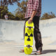 Plate-forme de planche à roulettes avec le symbole radioactif là-dessus.