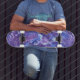 Couleurs violettes et bleues et forme sur un skateboard pour former un design extraordinaire.