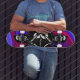 Chaque enfant voudra un de ces grands skates. Ce skate board de qualité a une guitare déplaisante cool jouant squelette design avec un arrière - plan tourbillonnant violet. Un cadeau de vacances parfait pour les garçons dans le sport extrême de la planche à roulettes.