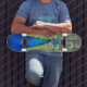Design de skateboard qui comprend l'image photo d'un Peacock bleu coloré avec des plumes fantastiques. Un design attrayant ! Sélectionnez la taille de votre planche à roulettes. Complétez votre skateboard en ajoutant des camions et des roues si vous le souhaitez.