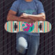 Cool, mignonne fille rose pony sur coloré rouge, orange, jaune, vert, bleu, blanc rayures arc-en-ciel motif. Ajoutez un nom pour personnaliser ce cadeau girly !