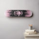 Le crâne rose mignon et les os croisés avec le point de polka cintrent et les coeurs est une conception girly pour des planches à roulettes.