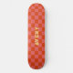 retro aesthetic trendy checkerboard pattern skateboard in pink and red, for him or for her is your personalised name in a bold funky and grunge distressed lettering. Get the prefect abstract design for a teen birthday or Christmas present. Just write your own name for a custom skateboard.