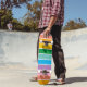 Planche à roulettes rétro arc-en-ciel cool pour enfants. Des rayures pastel doux arc-en-ciel décorent ce tablier de skateboard girly.