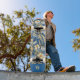 Skateboard Retro Yellow Blue Floral n Tropical Palms Initial