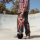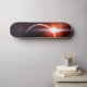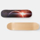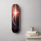 Une planche à roulettes qui comporte une planète, par le nom de Saturn. C'est un panneau noir qui a les contours de la planète, Saturn