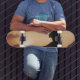 Conception pour un skateboard représentant une femme asiatique en silhouette. Assise sur la plage au coucher du soleil.