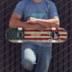 Skeleton Pirate Skateboard Le patinage est un jeu d'enfant, et il y en a pour tous les goûts dans notre gamme de skateboard. Un skateboard fabuleux garanti pour lever le sourire ! . Montrez votre fierté américaine ou offrez un cadeau spécial avec ce skateboard USA American Flag dans un motif de grunge usé en mauvais état sur le bois. Cette conception de skateboard drapeau des Etats-Unis d'Amérique avec étoiles et rayures en rouge blanc et bleu. Amusez-vous avec votre message personnel - patiner dans les rues et skatepark, ou la croisière.