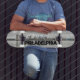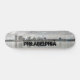 Voici la belle ligne d'horizon de Philadelphie vue de l'autre côté du fleuve Delaware dans la ville de Camden. Des nuages s'accrochent au-dessus dans le ciel orageux, et les reflets des gratte-ciel sont vus dans l'eau.